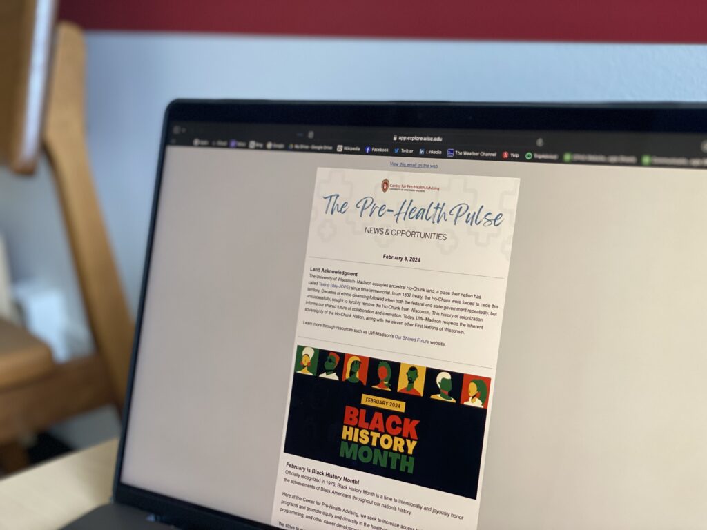 We send out the Pre-Health Pulse newsletter twice a month with pre-health events, jobs, volunteer opportunities, scholarships, and more.